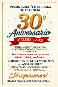 Next Saturday 15th November, the City Mission (Misión Evangélica Urbana de Valencia) will be celebrating officially 30 years of serving the Lord. This work has grown over the years. I remember starting serving there back in 1998, it was an extensive work attending mainly those people living a severe social exclusion, often homelessness for years. Also, the work aimed to help families defined as being in a critical financial crisis because of unemployment and lack of any income. The impact of Covid in 2020 reduced the work to only attending homeless people, at the time many of the volunteers were retired people who could not help in any way because of the restrictions and the closing down of literally all activities.